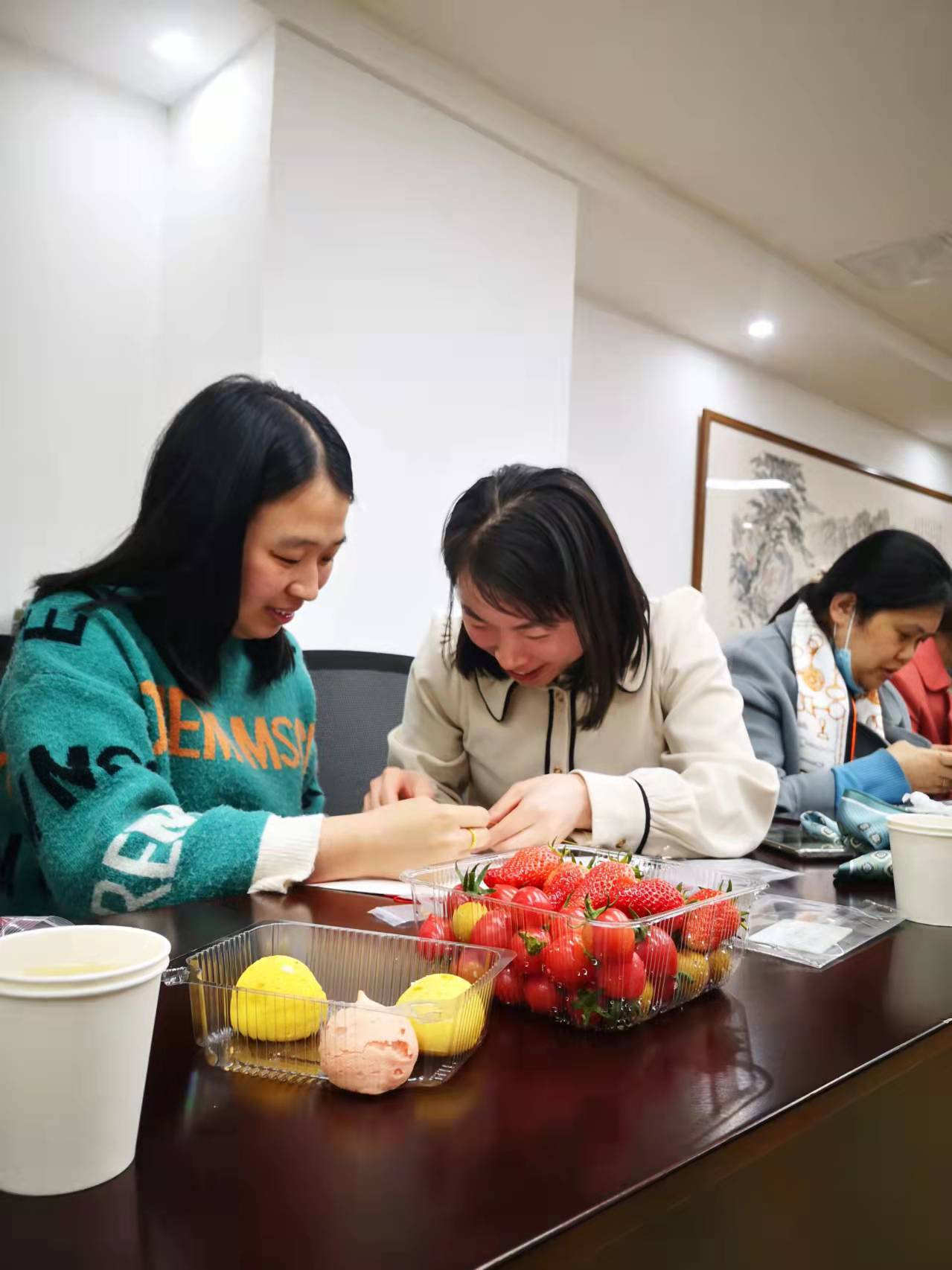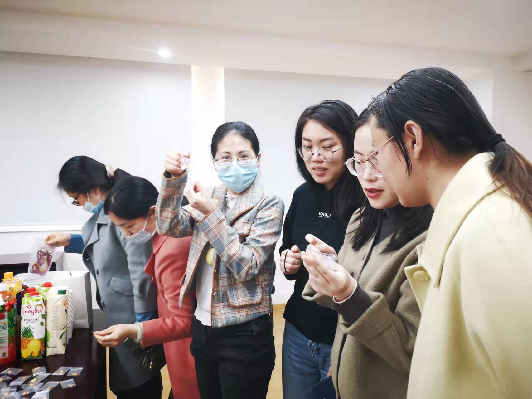 為每位“女神”準(zhǔn)備了繩編工具包、水果、點(diǎn)心、鮮花等,觀看了繩編的完整視頻,在怡然恬靜的氛圍中體驗(yàn)繩編的樂趣和意境,感受傳統(tǒng)繩編文化的魅力和博大精深。大家認(rèn)真學(xué)習(xí),互相探討交流,用自己靈巧的雙手纏、繞、卷、勾,最終制作出精美的手繩。